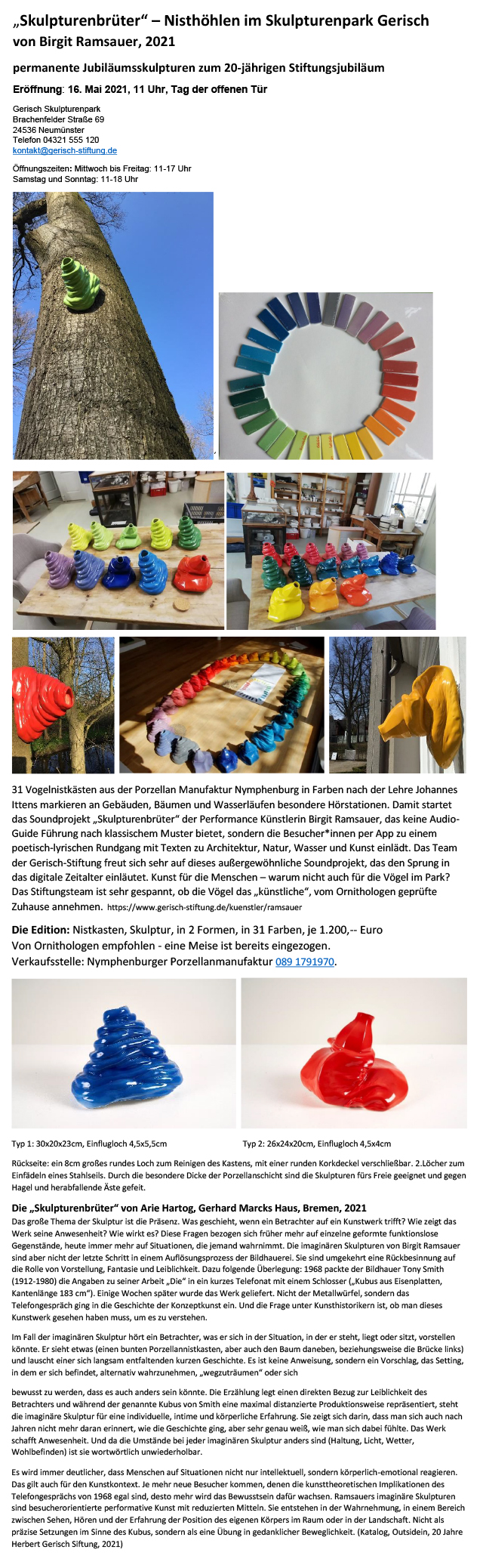 Wir zeigen verschiedene Duratransarbeiten in Aluminiumlichtkästen von Birigit Ramsauer. Die 1962 in Nürnberg geborene Künstlerin ist vor allem durch ihre Performances bekannt. Ihre Kunstwerke sind in zahlreichen privaten und öffentlichen Sammlungen vertreten.