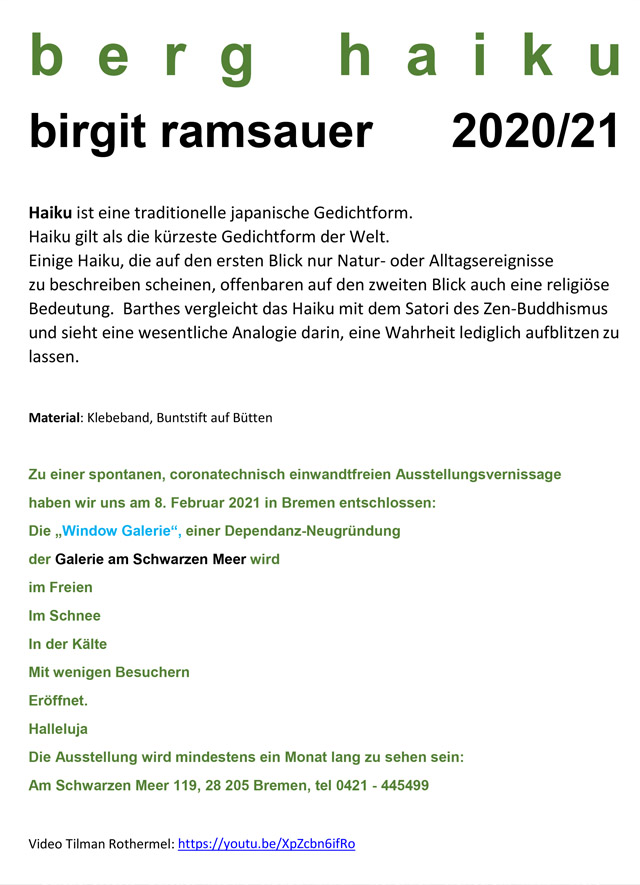 Dienstag bis Samstag 12:00 Uhr – 18:00 Uhr sowie nach Vereinbarung